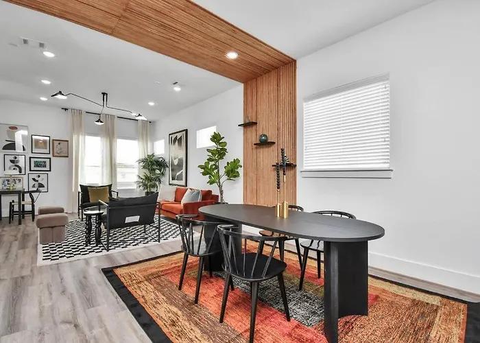 **Luxury Escape at Htx Med Center!** Offers a refined sanctuary in the heart of Houston, ideally situated just six kilometers from the vibrant Ensemble/HCC district. This exquisite villa embodies sophistication, providing guests with seamless access to the city's cultural and medical hubs while maintaining a serene atmosphere.